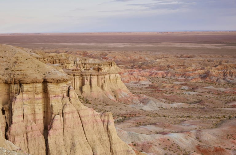 Today we visit Tsagaan Suvarga, a stunning natural landmark in the Gobi Desert. The cliffs are composed of clay layers that were once part of the ancient seabed, shaped over many years by wind and erosion. Watching the sunrise from the site is especially magical, as the cliffs glow in rainbow-like colors, creating a peaceful and otherworldly atmosphere. Locals consider Tsagaan Suvarga to be an energy center of the region.